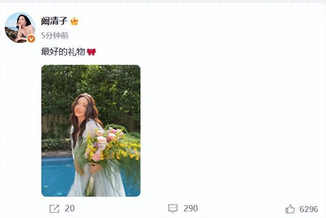 今日(7月24日)下午,36岁女星阚清子发布博文,简单5个字:“最好的礼物”,并配上大肚子孕妇照,官宣怀孕。