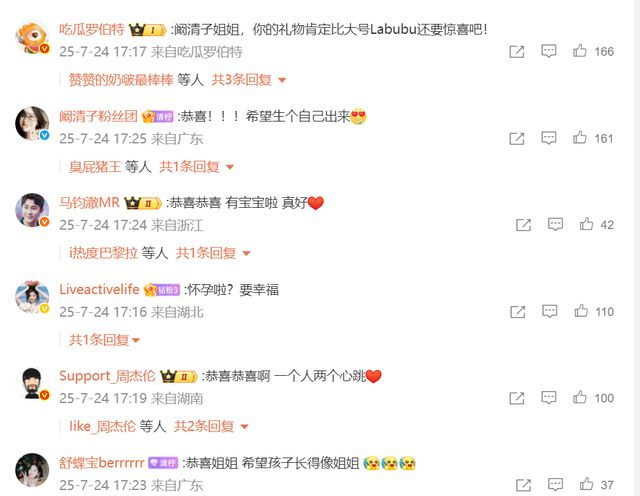对此,网友们纷纷表示:“恭喜!”“希望孩子长得像姐姐”……