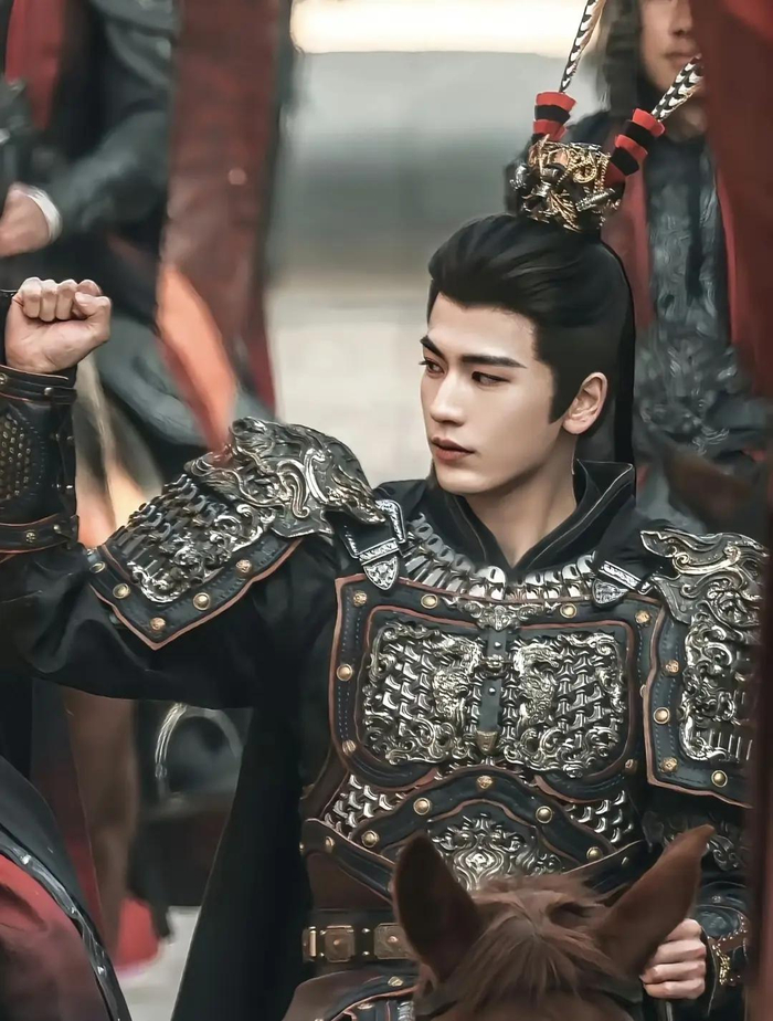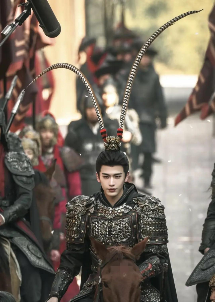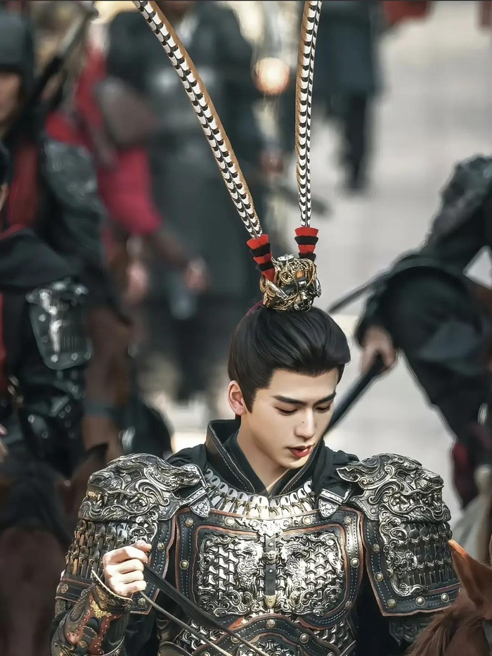 古装剧里的造型从来不是“锦上添花”,而是角色性格的延伸。谢征的雉鸡翎,就是他性格的“活招牌”。他不是那种老谋深算的老将,是意气风发的少年将军,雉尾翎的轻盈摆动,刚好衬出他的鲜活与锐气;如果是老谋深算的武将,可能会选更厚重的装饰,不会用这么灵动的翎羽 。