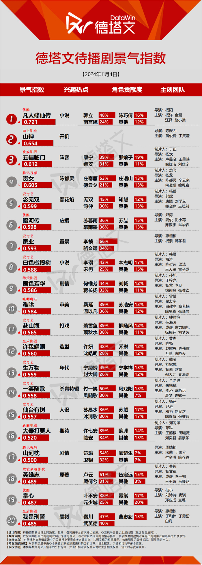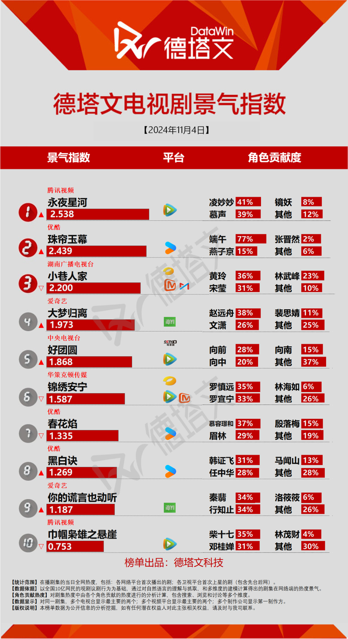 4、数据覆盖首次上星的电视剧和首次播出的网剧。