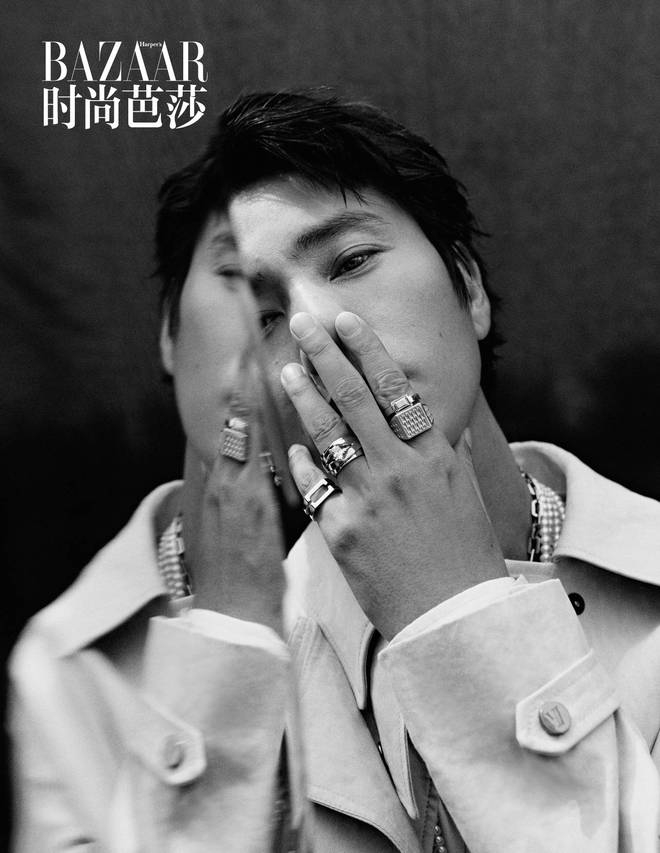 6月20日,陈坤时尚芭莎七月刊发布,这次大刊照片都以黑白影像来记录,故事感很强。照片中陈坤穿着大衣,带着项链、戒指配饰,一手托脸,怼脸的拍摄显得他五官很是精致,冷色调的空间凸显的整个人更加高级。