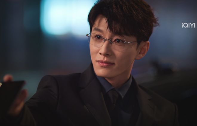 一出场,代旭就抓准了角色的主要特质,黑西装搭配金丝眼镜,斯文又腹黑,眼神极具侵略性,张力爆棚。