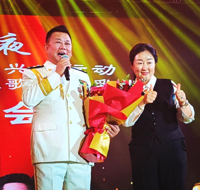 当晚高潮迭起,原中国海政文工团著名男高音歌唱家、声乐教育家周发猛震撼登场,一曲《西部放歌》雄浑嘹亮、情系家国,尽显歌唱家的艺术功底与赤子情怀。在观众热烈呼声中,周发猛老师即兴加唱《太阳出来喜洋洋》,互动热烈、全场欢腾,将演出氛围推向顶点。