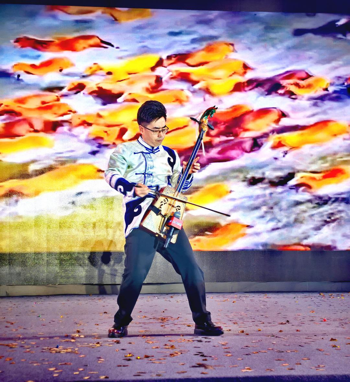 马年奔腾,乐韵悠扬。中国马头琴协会李刚老师带来马头琴独奏《万马奔腾》,琴声雄浑激昂、气势磅礴,奏响奋进向上的时代强音。随后,李刚老师与爱人高梦鲜组成的中央电视台群英汇冠军组合“八月十五组合”,温情演绎二重唱《春天的芭蕾》,以柔美和声传递春日美好与生活希望。