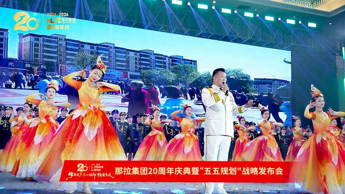 和平年代初心不改,使命在肩勇毅前行。军旅百人合唱团身着整齐着装,铿锵献唱《当那一天来临》《祖国不会忘记》,歌声慷慨激昂、正气凛然,既致敬军人忠诚担当,也彰显那拉乳业坚守实业、勇担重任的企业品格,引发全场强烈共鸣。