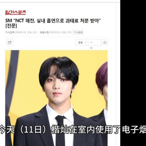 SM娱乐承认NCT楷灿室内吸烟已罚款,发布声明表达歉意