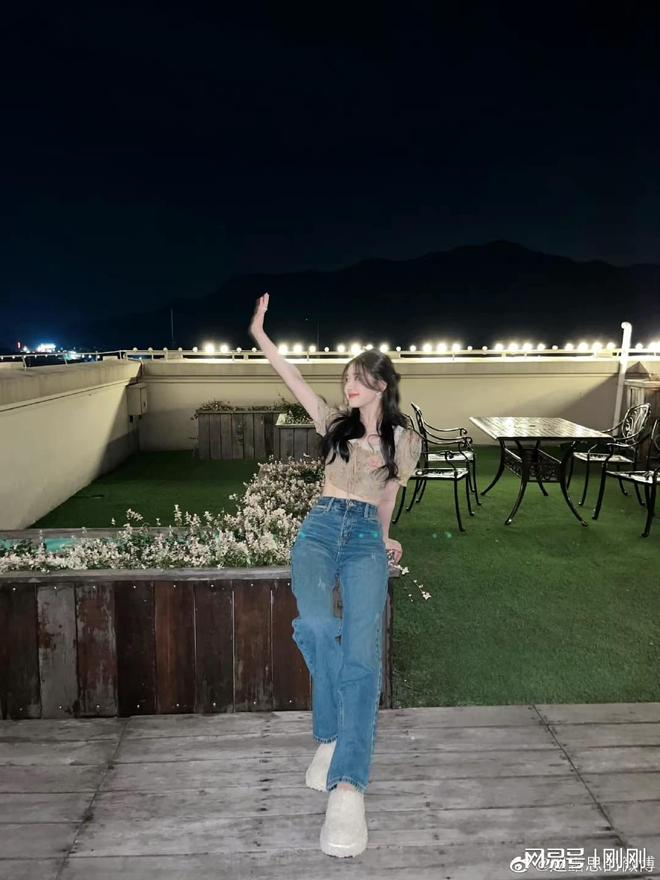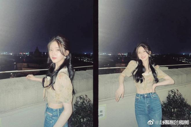 照片中的赵露思状态非常好,牛仔裤搭配露脐装符合当下元气少女的模样!