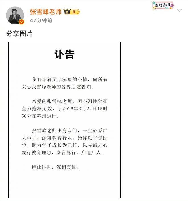 张雪峰曾四次预言自己的死亡。