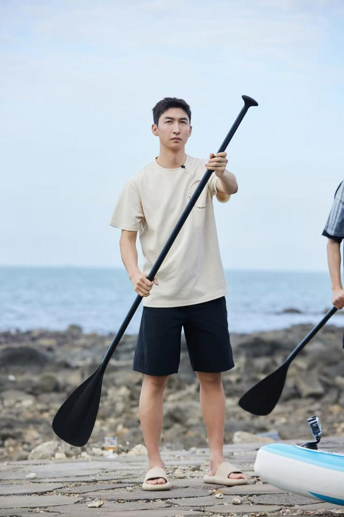 不过,兄弟情归兄弟情,活还是得毫不含糊地干。刚夸完两人的厨艺,王鹤棣就掏出义工徽章,安排起任务:收拾厨房、摆果盘、扔垃圾、布置打卡点……三人把王传君带来的“来个拥抱”打卡邮筒,合力挪到海边最佳位置,梦回“桃花坞”中“三傻”同框名场面。转战厨房后,三人也不忘打打闹闹,王鹤棣拿起莴笋假装打棒球,王传君和武大靖立刻配合入戏,宠溺的氛围蔓延整个厨房。最令人触动的瞬间,是皮划艇大赛结束后,两位哥哥让王鹤棣坐进小推车,拉着他返回客栈,途中还争着要背他。王鹤棣欢快叫着一声声“哥哥”,兄弟间的默契与温情溢于言表。
