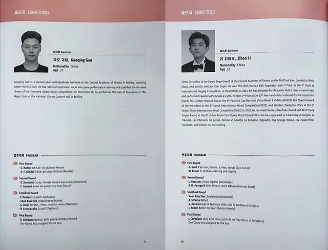本届大赛全球报名超600人,仅55人晋级正赛,中国选手共10人入围,赛事逐级淘汰:首轮55进25、次轮25进13、半决赛决出6名获奖选手展开全球总决赛,李梓豪便是其中之一。评审团由大都会歌剧院、柏林德意志歌剧院、国际经理人、首尔国立大学、德国国家歌剧院导演、中央音乐学院等全球顶级院团与院校权威专家组成,评审标准公正严谨。