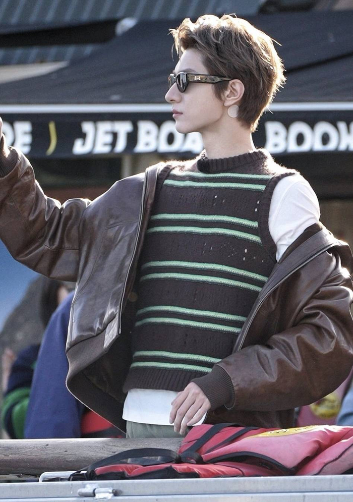 林一此次大胆挑战了极为挑人的浅金发色,将刘海梳起,毫无保留地展露出优越的骨相、高耸的眉骨与深邃的眼窝。阳光下,发丝泛着细腻的银灰调,与他187cm的挺拔身姿相得益彰。站在新西兰的蓝天白云下,工装风的硬朗与金发的张扬相互碰撞,彻底打破了过往乖巧的邻家大男孩形象,被网友盛赞仿佛是从漫画里走出来的“撕漫男”。