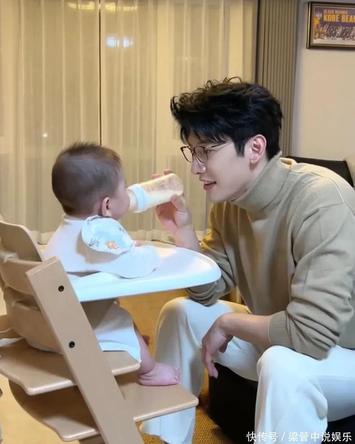 35岁刘芮麟化身超级奶爸,带娃健身喂奶超熟练,儿子似他mini版