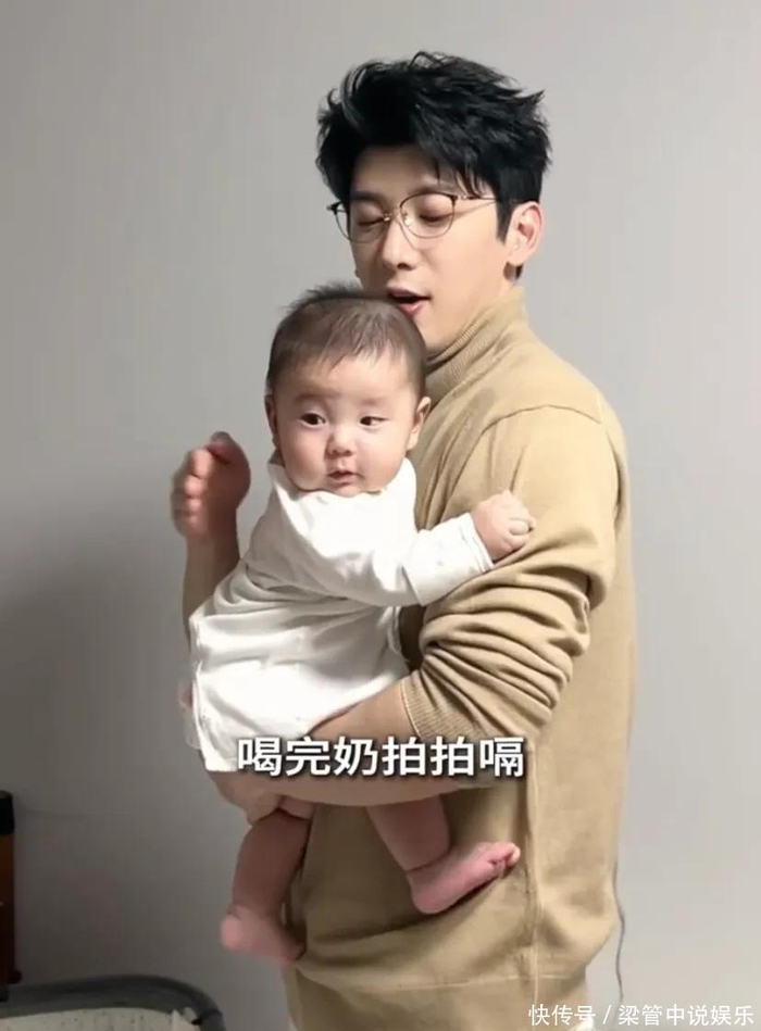 喂完奶还会给孩子拍嗝,这空心掌给孩子拍嗝,手法正确!咱就是说刘芮麟这奶爸当得很称职,这大概是所有妈妈都认可的“超级奶爸”了吧!