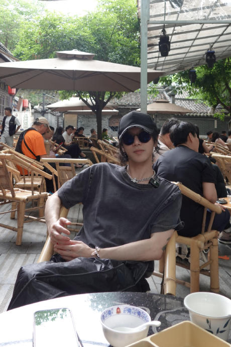 华晨宇的松弛感首先源于他主动剥离明星光环的生活姿态。网友偶遇画面中,他反复呈现"去舞台化"的真实:2024年成都街头,他戴着棒球帽坐在竹椅上喝茶看川剧变脸,如同本地青年般闲适;2025年公园里,他穿着常服与工作人员打赌汤圆馅料,为赢十块钱雀跃欢呼,鲜活如邻家男孩;甚至被拍到在粉丝身后排队买饭时,毫无身份顾忌的自在状态,彻底消解了明星与普通人的距离。这些场景里,没有保镖簇拥的隔离感,没有刻意经营的精致,只有融入市井的坦然。