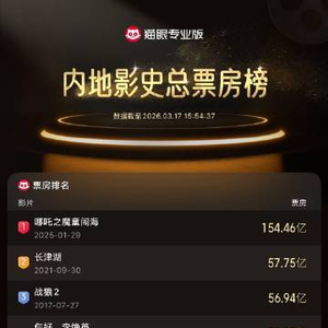 目前在内地影史票房榜单前十中,除了《疯狂动物城2》,其余均为国产影片。排名第一的是《哪吒之魔童闹海》,票房高达154.46亿元。该片由可可豆动画、光线彩条屋影业出品,饺子编剧并执导,于2025年1月29日在中国大陆上映,上映后创下多项纪录,包括亚洲首部票房破百亿元(人民币)电影、亚洲首部票房破20亿美元电影、全球动画电影票房榜冠军等。