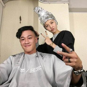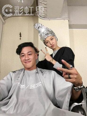 照片中可见P嫂亲自上的时候,为丈夫打理“新发型”,过程中何润东自嘲自己偶像包袱很重,并一脸委屈的对镜头表示近看可以看到他眼中的泪光。