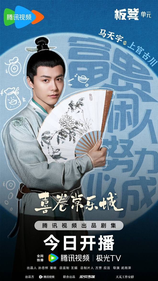 1月30日,由武雨泽执导,马天宇、卜冠今领衔主演,张一铎、成果、李胤维、任梓慧主演,宗俊涛特别主演的古装喜剧《喜卷常乐城》在腾讯正式开播。该剧讲述了在一座重债之下的破败府邸,三名自身难保的异乡少女、四位迥然不同的冤种兄弟于嬉笑怒骂间上演了普通“长漂”微小却闪亮的生活故事。开播当天,官方发布了一组人物版海报和一支喜剧版预告,引起观众热议,好评不断。