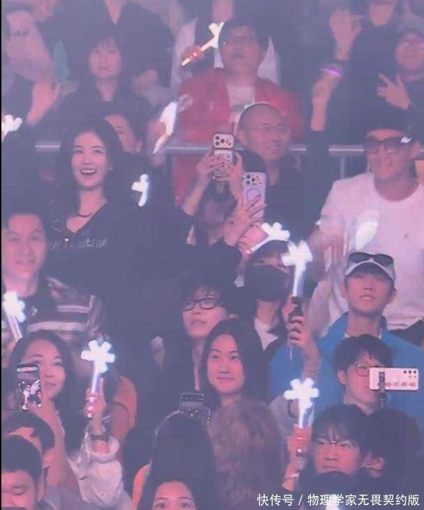 跑男团到韩国看宋雨琦idle演唱会,白鹿在李晨陈赫身后比心
