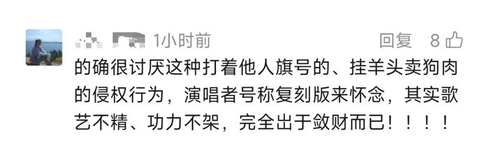 “未经许可使用张国荣先生的肖像、姓名进行商业宣传,已涉嫌违法。演唱‘哥哥’的经典曲目,使用相关演出视频而未获得版权方的合法授权,同样构成侵权。请停止所有非法行为。”