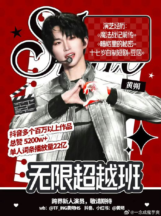从《无限超越班》片场摇臂下的角色淬炼,到《少年逐繁花》草原街头中的本色狂奔,黄朔以风格的两极诠释了新生代艺人的弹性:演技需要"收"的沉淀,综艺需要"放"的胆识,而穿透这一切的,是00后艺术工作者对"真实"的虔诚——无论塑造他人,还是成为自己。