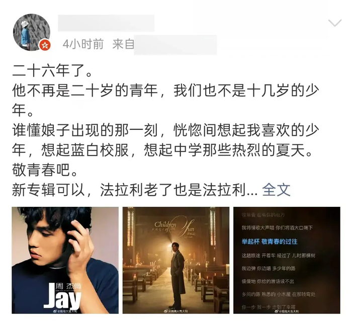某种程度上,行业正在不断切碎时间,以占据更多瞬时注意力;而周杰伦则在压缩时间,把注意力集中到一个节点爆发,并通过内容延续影响力。