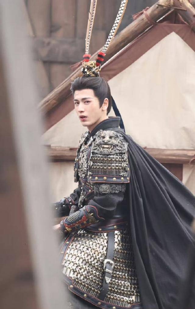 先复盘一波名场面:玄黑铠甲配暗红纹路,头顶两根超1米的雉鸡翎随风轻颤,张凌赫往那一站,既有少年将军的桀骜,又有战神的威严,走路带风、挥剑飒爽,网友直呼“古装建模脸实锤”“一步一摇动山河”。可镜头一cut,这位“战神侯爷”就秒破功——不是偷偷扶头,就是下意识歪脖子,连定妆时都忍不住反复吐槽:“好重啊”“感觉头都要被压歪了”。