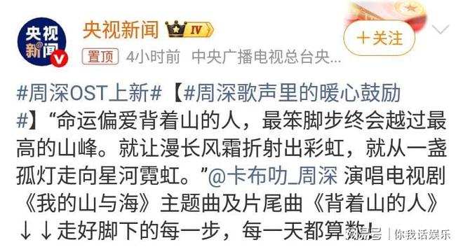 就在今天,周深《背着山的人》,被新华社好评