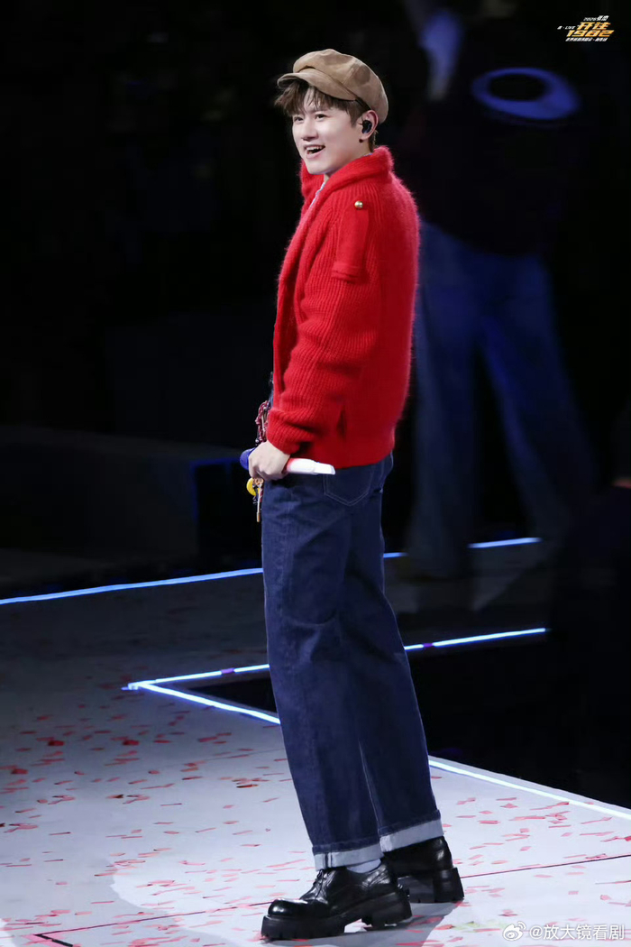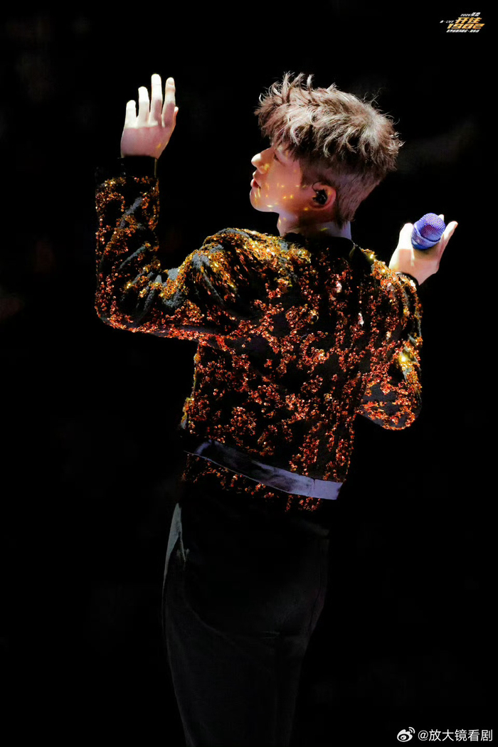 张凌赫送蓝色花篮助阵张杰鸟巢演唱会
