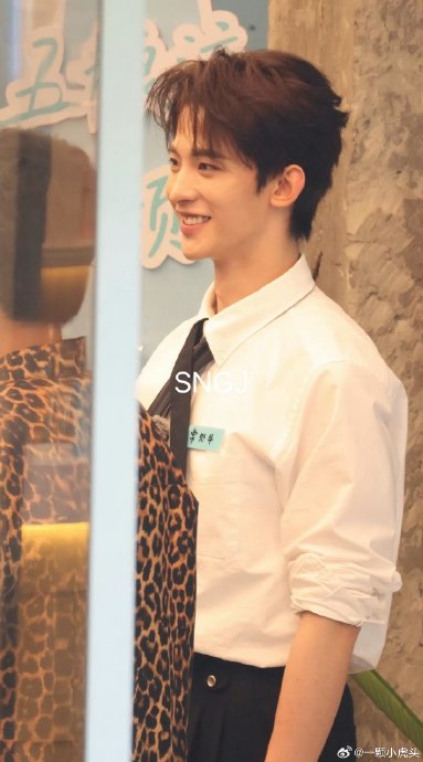 身穿绿色花纹毛衣或白衬衫,清爽阳光的造型打破古装印象,被赞“鲜衣怒马少年郎”,比剧照更显鲜活朝气。