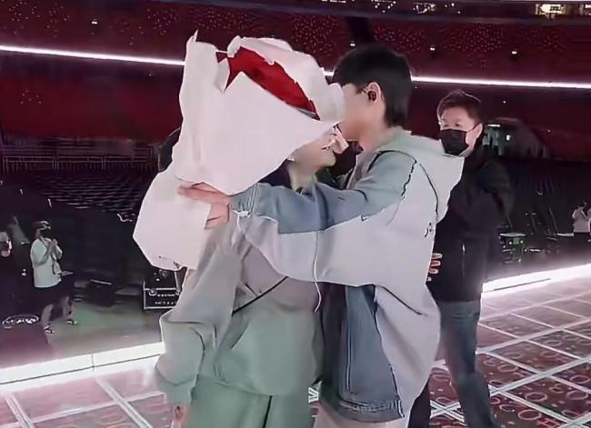 谢娜抵达鸟巢时,张杰刚结束彩排。他快步上前,一手接过花束,另一只手揽住妻子。两人相拥的画面被目击者描述为“一手抱花一手抱人”,动作自然。谢娜今年特意在汽车后备箱准备了专用自行车,似乎为长期践行这个仪式做了准备。