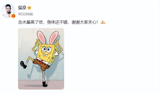 对此,吴京发文回应:“含水量高了些,身体还不错,谢谢大家关心!”