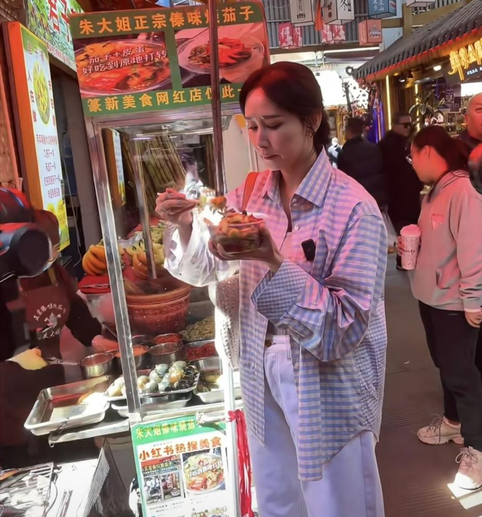 昆明某农贸市场里,一位扎着麻花辫、身穿格纹衬衫和牛仔裤的女子蹲在小吃摊前,捧着米糕吃得满眼放光。 路人举起手机偷拍,镜头拉近才认出,竟是嫁入马来西亚豪门的女星胡静。