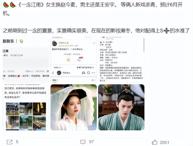 各位读者,看到网传赵今麦要搭档王安宇出演《一念江南》的消息后,你们期待这部剧吗?