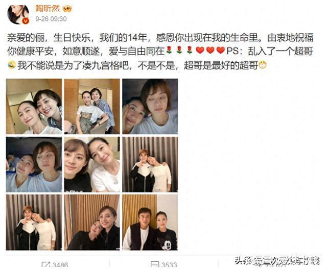 陶昕然在配文中写到,两人成为好友14年,专门为朋友庆祝生日,画面中,孙俪和陶昕然贴脸合照,看得出两人的感情真的很好。