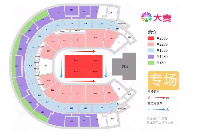 - 内场FLOOR EAST(主攻区)等紧邻舞台,沉浸式观演体验,多为粉丝组织“强攻区”。