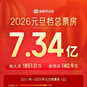 根据票房数据平台统计,截至2026年1月3日21时,元旦档期内全国电影总票房达7.34亿元,疯狂动物城2以2.19亿元的成绩位居档期首位,成为本年度元旦档票房最高的影片。该片自上映以来表现强劲,截至目前累计票房已突破42.40亿元,即将刷新中国影史进口影片的最高票房纪录。