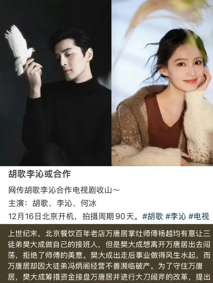 由黄磊担任总导演,胡歌、李沁领衔主演的电视剧《人间有味》(原名《收山》)于12月16日在北京开机。