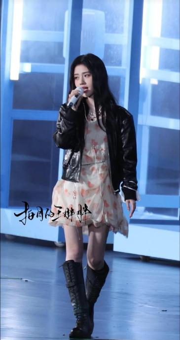 鞠婧祎此次彩排选择全开麦形式演绎杨丞琳经典歌曲《雨爱》,其标志性的“蜜嗓”在高音部分展现惊人穿透力,即使带病排练仍保持零瑕疵音准,被粉丝称为“行走的修音机”。路透视频中,她身着皮衣叠搭碎花纱裙的甜酷造型立于舞台,透明雨伞与碎光特效交织,营造出偶像剧般的唯美氛围,而歌声的稳定性与情感表达却未因复杂的舞台设计打折。这种颠覆大众对“偶像歌手”实力质疑的表现,成为热议的核心动因。