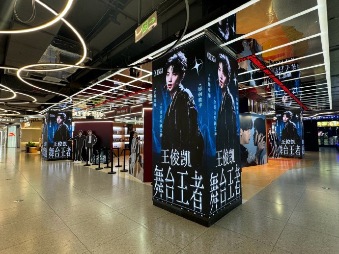 粉丝以“凯撒蓝”为主题,将杭州核心地标打造成王俊凯的专属艺术展厅。湖滨88商场的外立面巨屏轮播其新歌《无人乐园》的视觉符号,中庭四根立柱披挂蓝色灯幕,篆刻“像阳光无可取代”“与时间共振,与爱共振”等定制文案,将商业空间转化为情感圣殿。武林银泰广场则化身“花街应援”核心区:数千朵蓝白色花束组成波浪形长廊,搭配AR歌词透卡装置,手机扫描即可触发《无人乐园》全息动画,实现物理空间与数字艺术的共生。路人惊叹“仿佛闯入婚礼现场”,更感慨粉丝用一座城市的灯光诉说着“平安健康”的朴素祈愿。