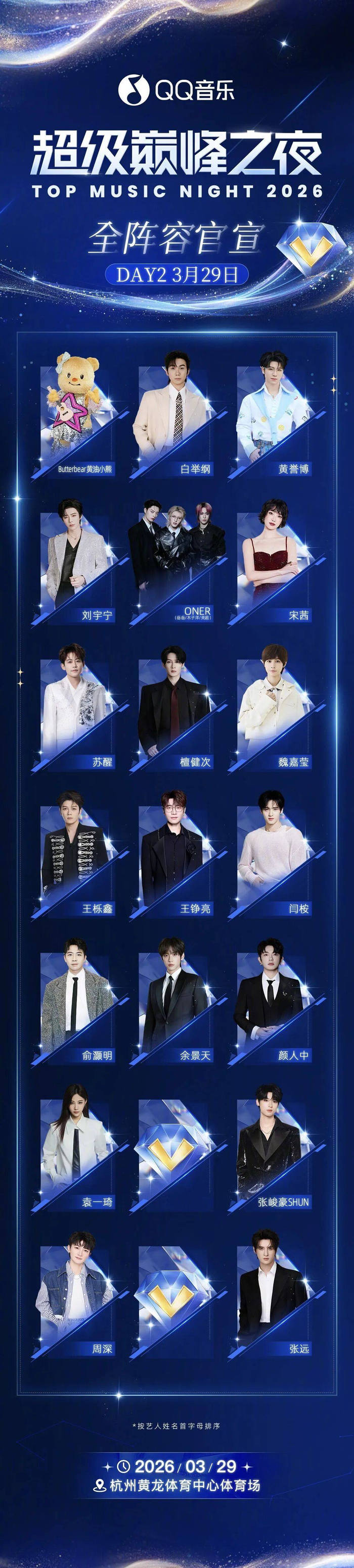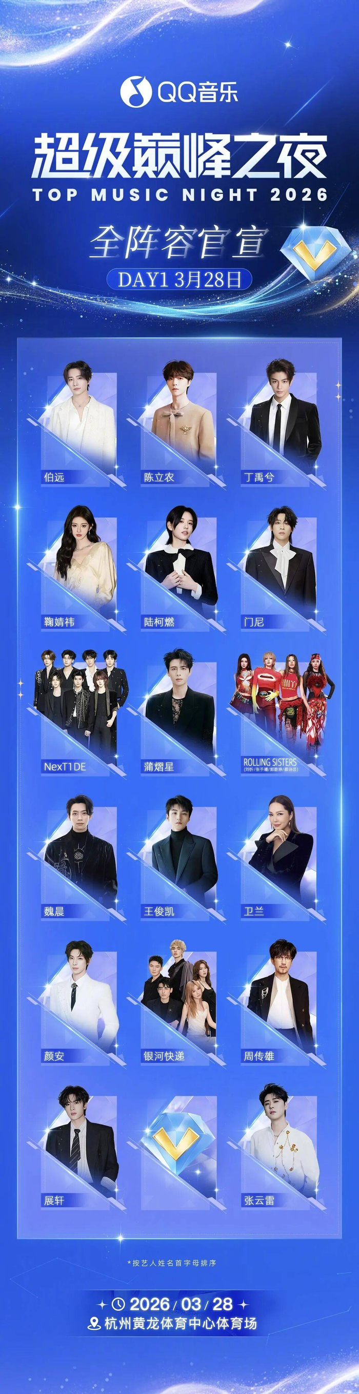 定了!2026QQ音乐巅峰之夜,36组艺人齐聚黄龙!