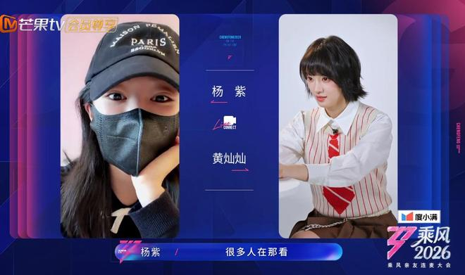 我们可以看到,姐姐们的连线视频发出后,最先登上热搜的话题就是“杨紫为黄灿灿乘风2026打call”。