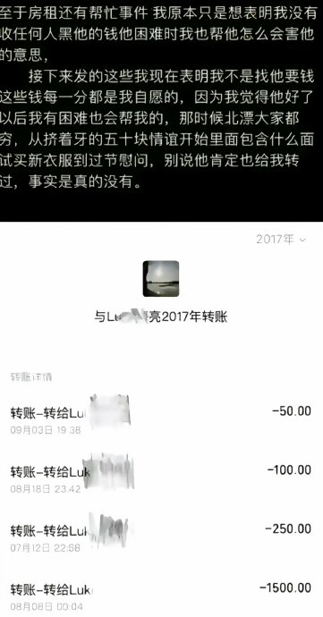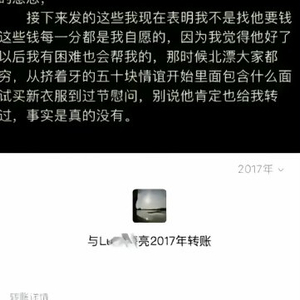 经济支持:吴楚一多次晒出2017-2023年间的转账记录,含“520”“1314”等特殊金额,自称承担陈牧驰北漂期间的房租、医疗费(如借贷支付高烧治疗费)及生活开支。