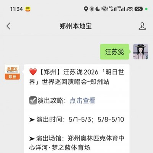 温馨提示:微信搜索公众号【郑州本地宝】,关注后回复【汪苏泷】可获2026年郑州汪苏泷演唱会攻略,包括最新消息、购票入口、开票时间/抢票攻略/门票价格/时间/地点/交通等(持续更新)