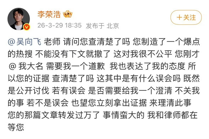 李荣浩称事情蛮大,网友关注后续