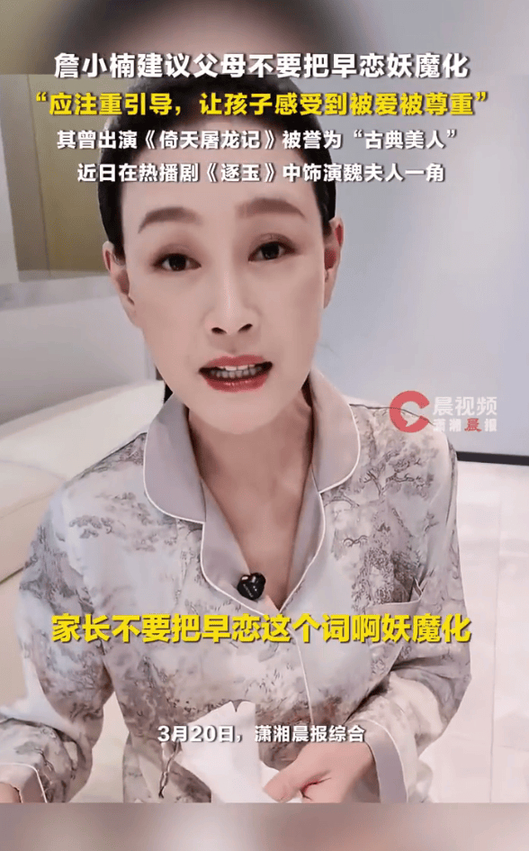 《倚天屠龙记》女演员谈孩子“早恋”!建议父母不要把早恋妖魔化 每日新闻摘录 03.2922:54 关注 (来源:潇湘晨报) 3月19日,演员詹小楠近日分享教育心得,建议家长理性看待孩子“早恋”。她认为青春期因荷尔蒙对他人有好感,属正常现象,不应将早恋“妖魔化”,父母应注重引导和孩子建立朋友式的亲子关系,让孩子感受到被爱被尊重。据公开资料,詹小楠,1975年出生,2003年,她在苏有朋版《倚天屠龙记》中饰演“朱九真”而被观众熟知,近年在《逐玉》《安乐传》《承欢记》等剧中持续活跃。 加载中... 视频 直播 美图 博客 看点 政务 搞笑 八卦 情感 旅游 佛学 众测