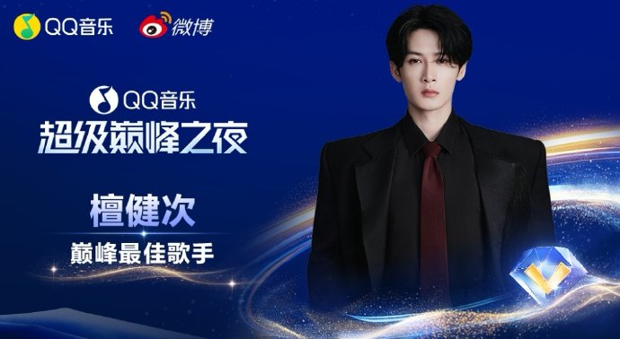 檀健次在2026年3月29日的QQ音乐超级巅峰之夜中人气爆棚,不仅以522万超高TOP值斩获「巅峰人气歌手」荣誉,更以全场震撼的黄海应援和压轴级舞台表现成为焦点。