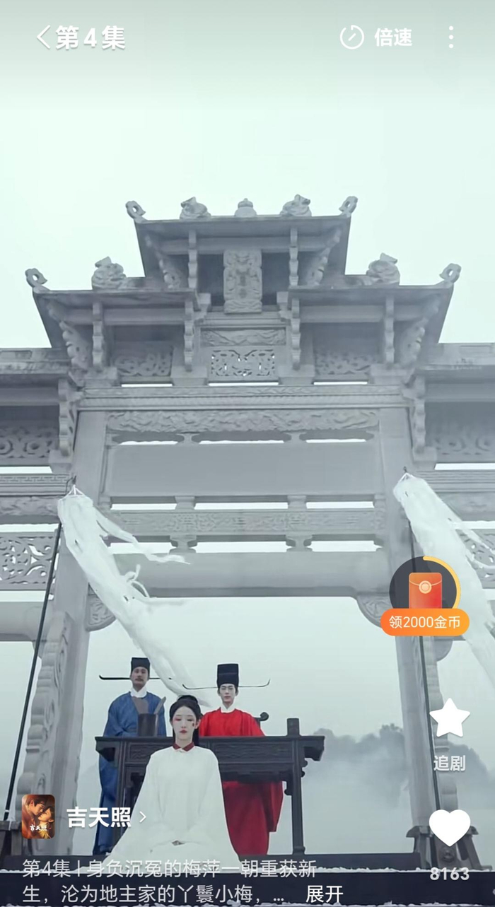 微短剧的核心是节奏快,一两分钟的剧集中要有两三个反转和丰富的故事,但《吉天照》节奏太慢。例如,开篇讲述梅萍被东方德迎娶进门后遭到迫害,家产被占,父亲被气死,她自己也由妻贬为妾,还要被东方德献给权臣玩弄。这些内容在微短剧里用了整整5集来表达,实在有些太慢了,很难吸引微短剧的用户追下去。