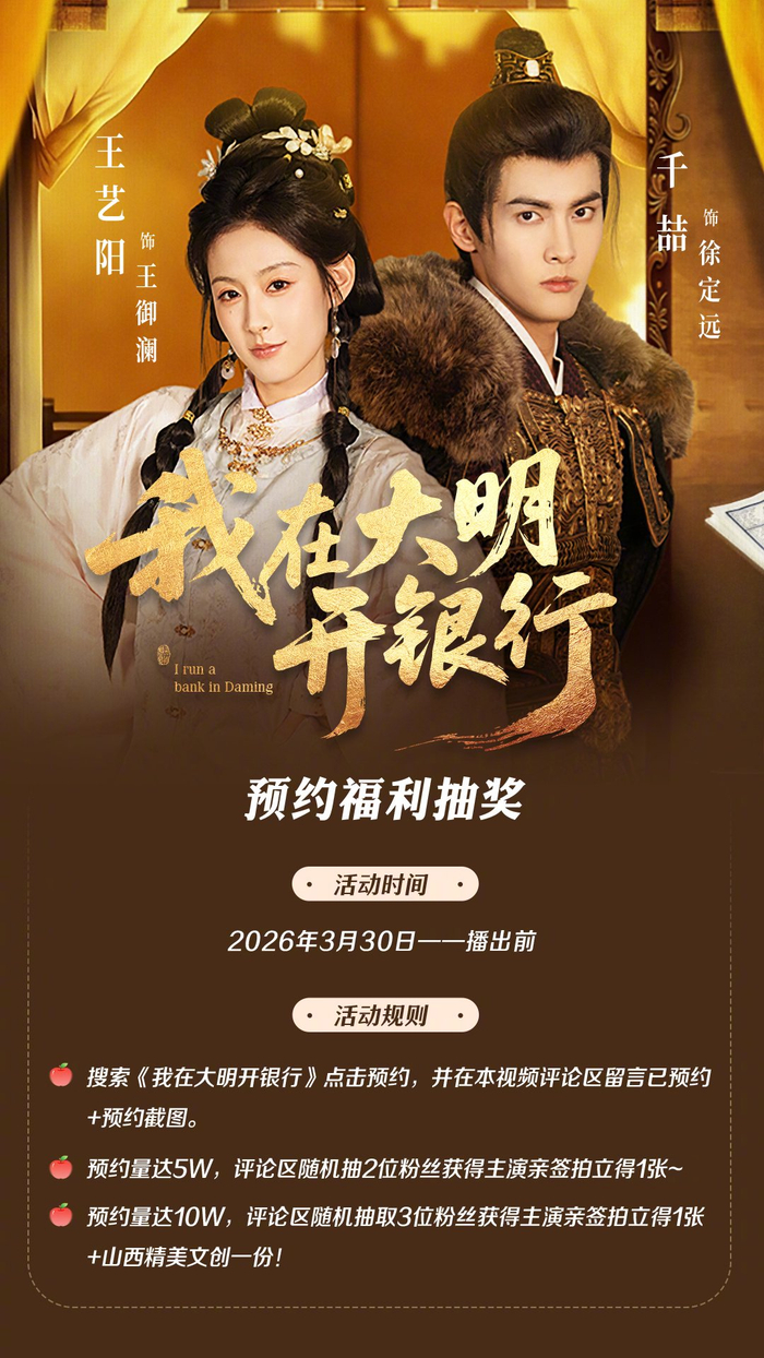 《我在大明开银行》预约抽奖开启,王艺阳千喆亲签拍立得等你拿 山西卫视 山西卫视官方账号 03.3018:27 关注 谁还没预约!《我在大明开银行》🍎预约抽奖开启,@王艺阳@千喆亲签拍立得+山西文创等你来拿!穿越搞钱爽剧,不恋爱脑只搞事业,狠狠期待住了!#我在大明开银行# #千里挑艺# #短剧推荐#