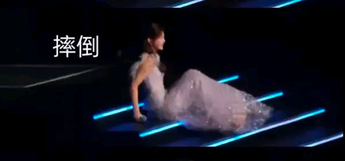 据相关视频资料显示,当时陈妍希正准备走到舞台中央演唱,但由于舞台反光过于刺眼,她没有注意到前面的台阶,结果一个不慎就摔倒了。摄像大哥也是看热闹不嫌事大,全程对着她拍摄下了整个过程
