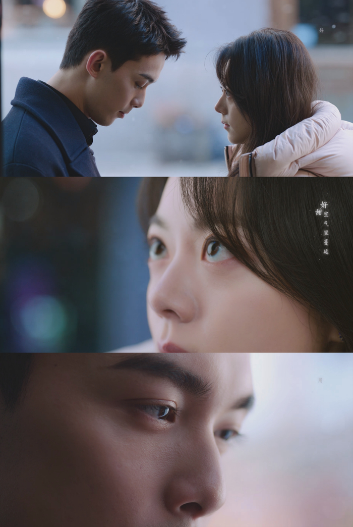 以前内娱现偶备受诟病的一点是氛围感营造差,比如场景敷衍、打光不讲究、镜头不精细、画面不唯美,等等。这一回《在暴雪时分》在唯美氛围感的营造上扬眉吐气。
